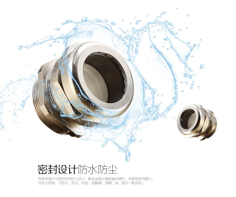 使用方法: 金屬電纜防水接頭是電纜的配套產(chǎn)品,接頭可將電纜鎖緊,另一端可接入設(shè)備箱體上,也可以根據(jù)選用螺紋接入進(jìn)出口為內(nèi)螺紋的電動(dòng)設(shè)備上。